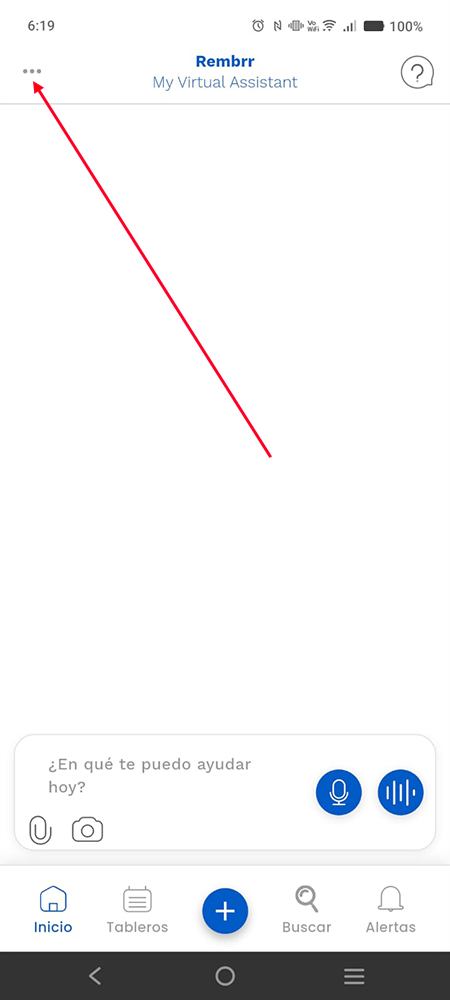 On the home screen, tap the three dots (…) icon located in the upper left corner.
