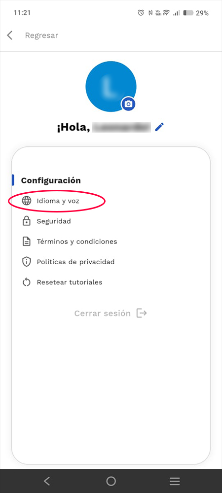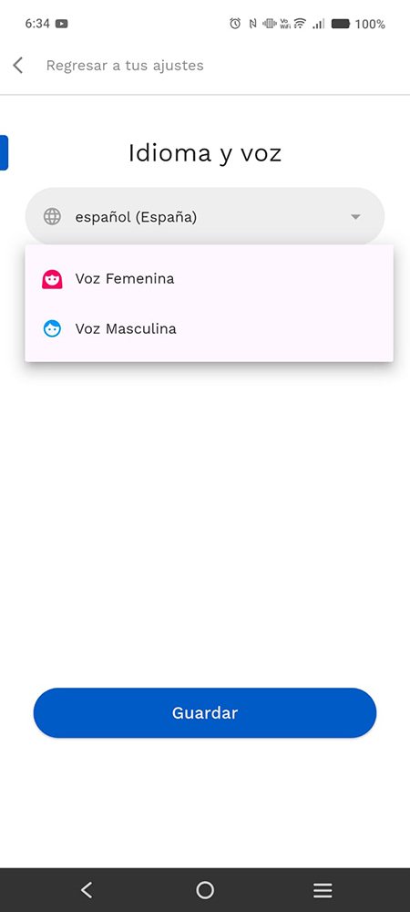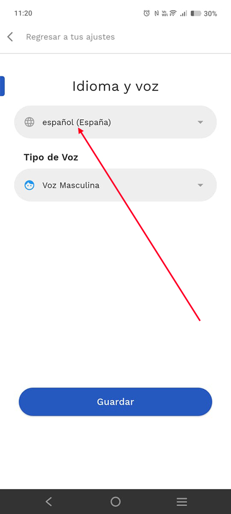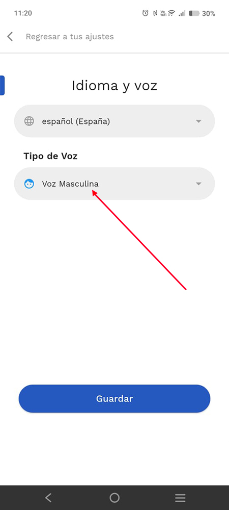 Después de seleccionar tu idioma y la voz, presiona el botón Save para aplicar los cambios.