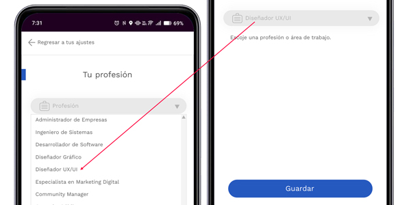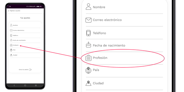 To access your profession, simply click on the profession field to enter the option, then you can choose your profession or field of work.